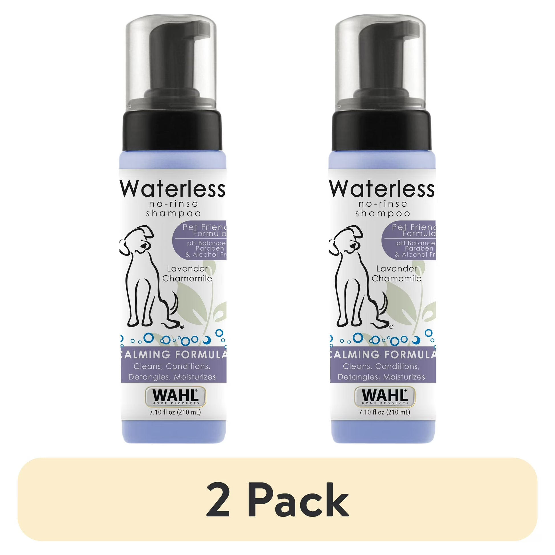 The Wahl waterless, no rinse lavender & chamomile scented shampoo is great for shampooing between baths and is formulated with all-natural plant-based cleansers. Our guar conditioner moisturizes hair by penetrating & sealing in natural sugars & proteins. The lavender chamomile scent is designed to give your pet a fresh and clean smell without having to give them a full bath. Our plant derived cleanses make our waterless shampoos the choice for owners who want to avoid harsh chemicals for their dogs and themselves. Our shampoos are PEG-80 free, alcohol free, paraben free, and pH balanced. Wahl has been serving professional vets and groomers for over 50 years, helping to clean and condition fur & hair for smooth, soft coats. As a company of animal lovers, we believe your pet deserves the very best.
